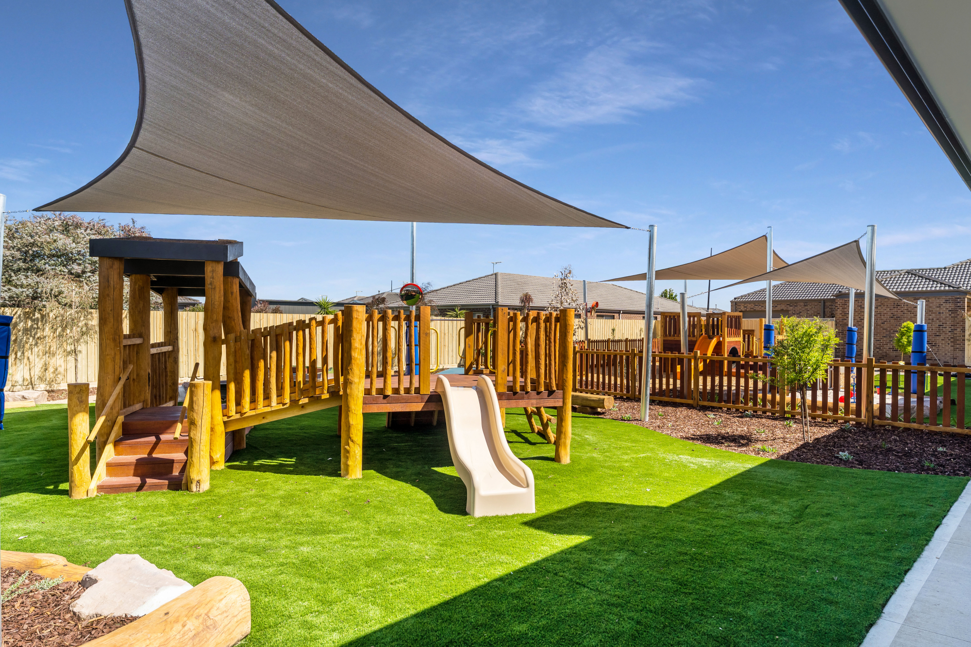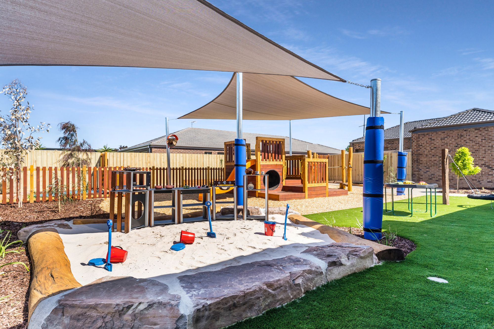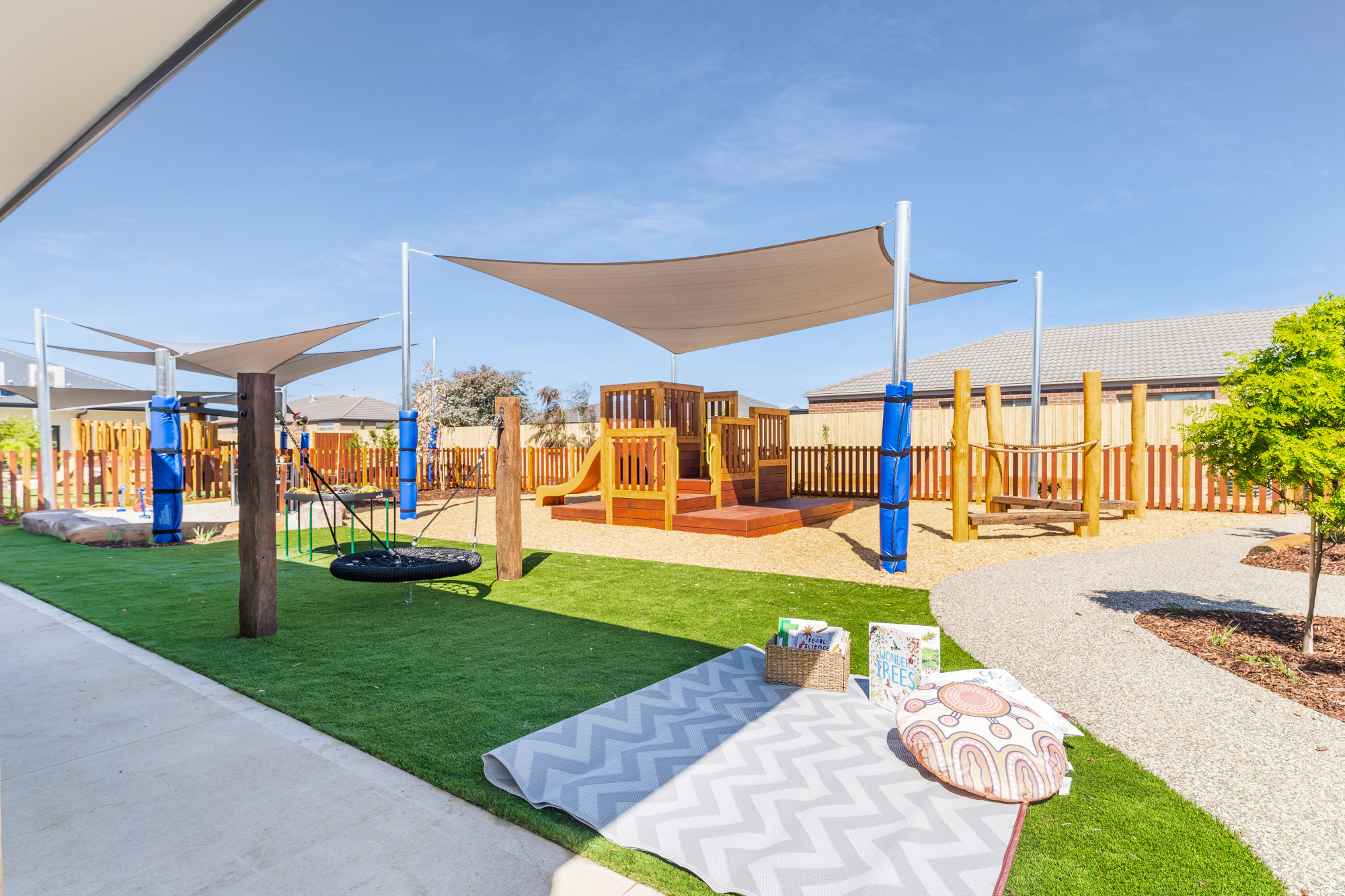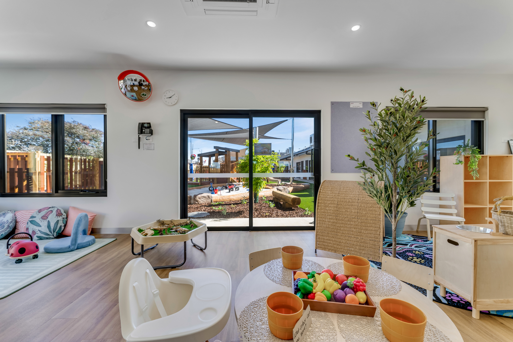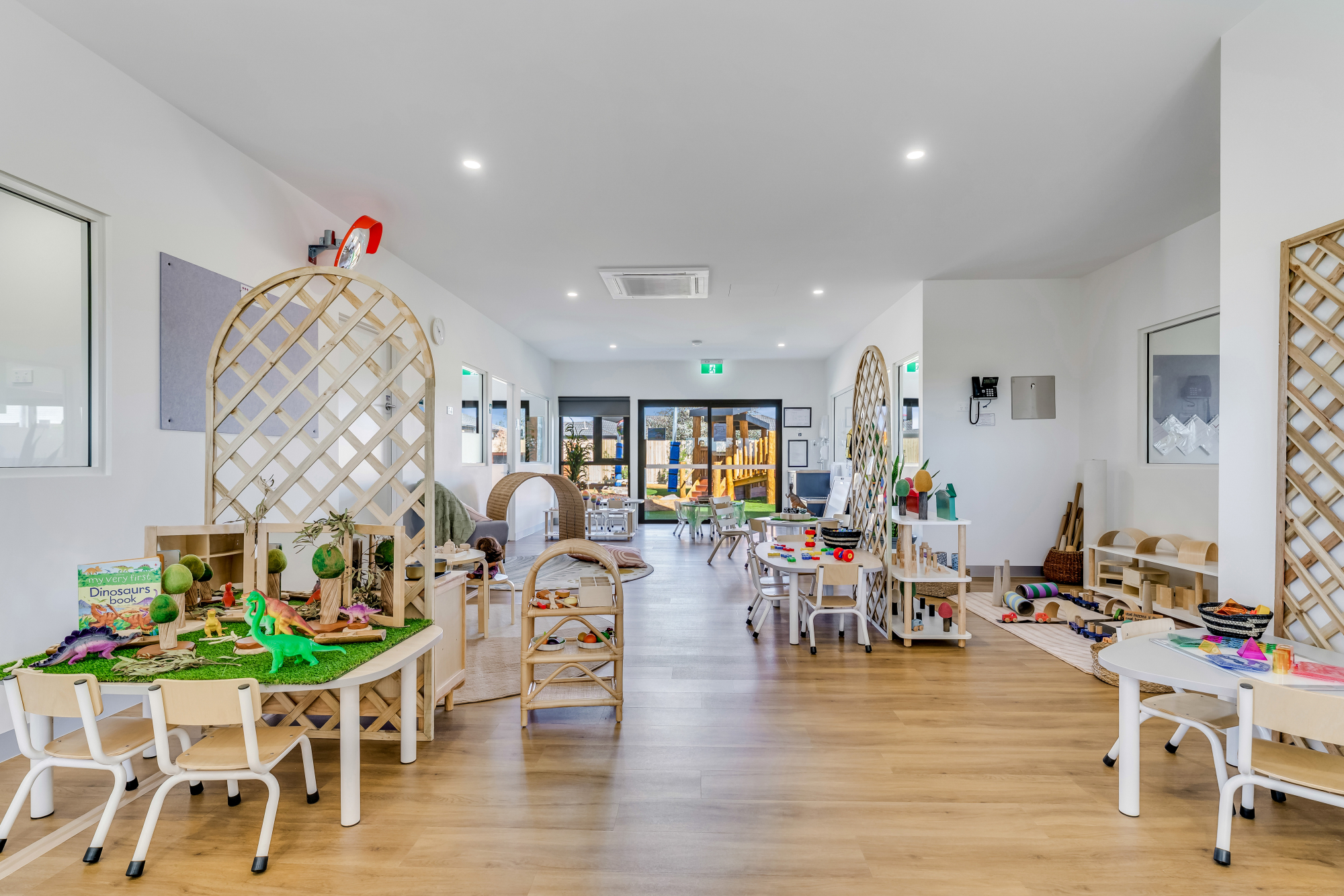 Aspire Weir Views features seven purpose-built indoor rooms and spacious outdoor areas supporting children's development from six weeks to six years old. Each room is filled with high-quality educational toys, books, crafts, and imaginative play experiences, ensuring endless opportunities for discovery and fun every day! The outdoor space also connects seamlessly with the indoor rooms. This makes it easy for children to move between the indoor and outdoor spaces, supporting a holistic learning experience. Check out some of the photos of our spaces!