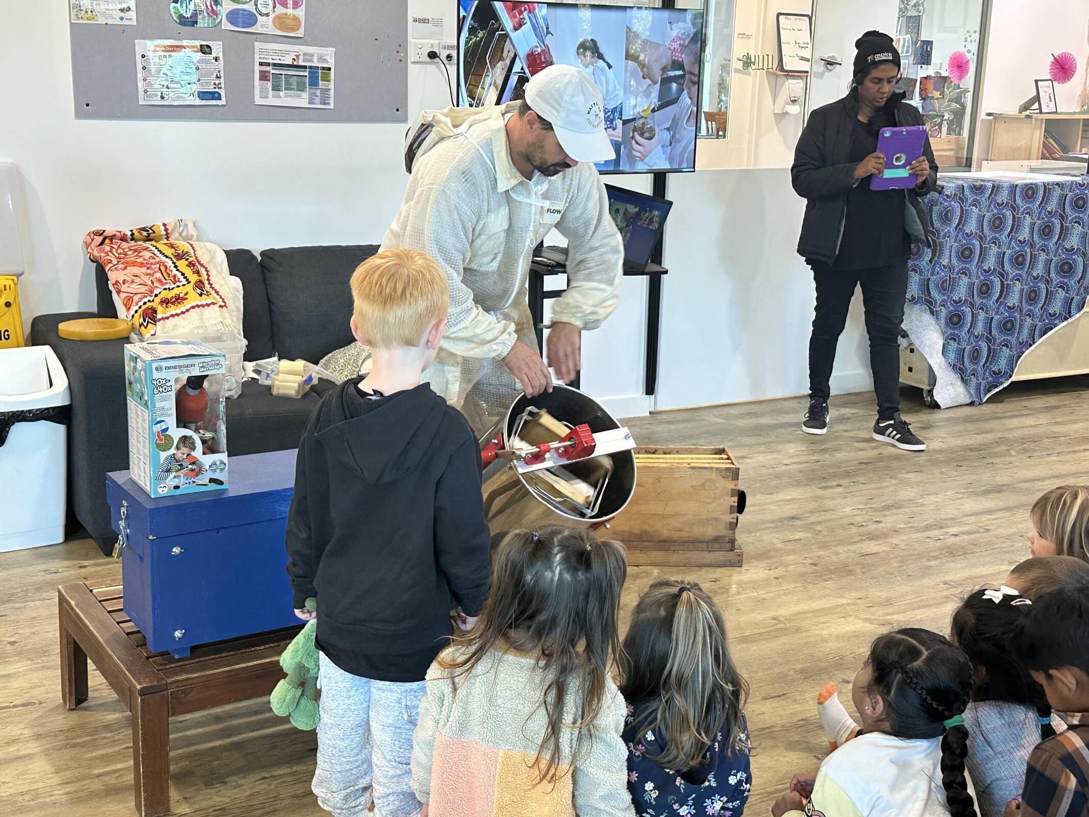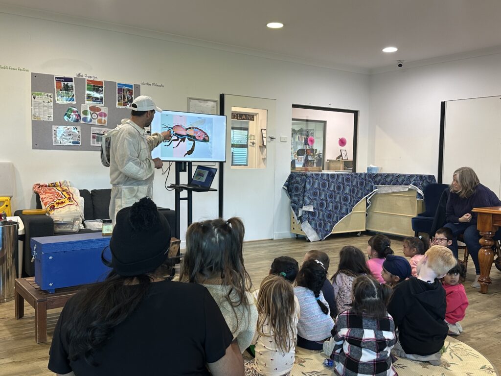 Aspire Pakenham were fortunate to have Wattle Tree Beekeeping provide an engaging Bee Incursion for the children at the centre. The Bee teacher went through an engaging presentation that showed the importance of bees and pollination in our ecosystem, how bees make and protect their honey, the lifespan of bees, why bees sting us and more!